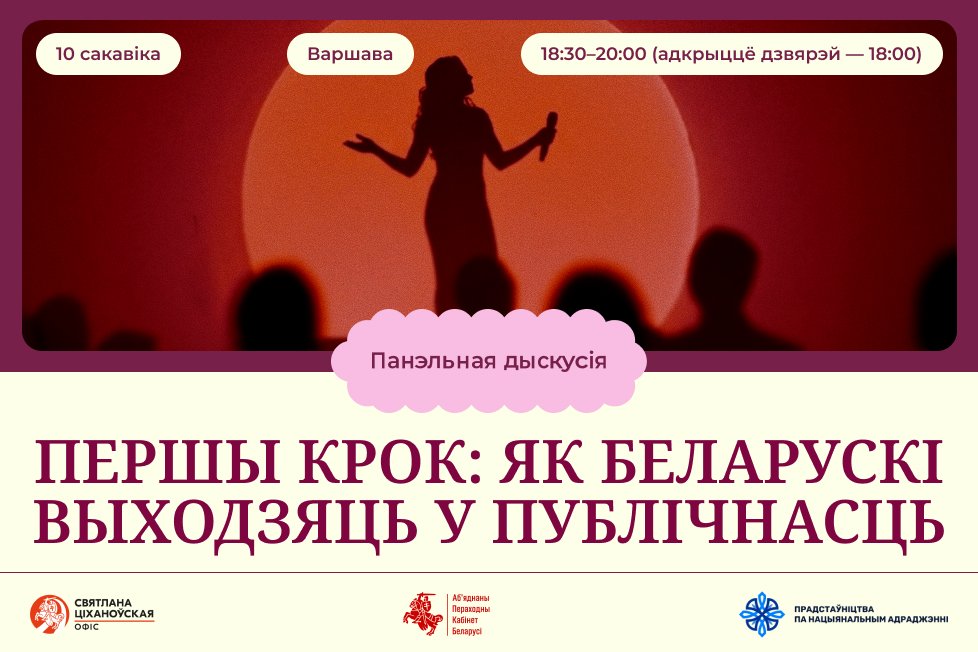 Офіс Святланы Ціханоўскай і Прадстаўніцтва па Нацыянальным адраджэнні Аб’яднанага Пераходнага Кабінета арганізоўвае панэльную дыскусію ў Варшаве. Выбітныя беларускі падзеляцца досведам у фармаце «роўная — для роўнай» — пра страх, першыя памылкі і момант рашэння пачаць дзейнічаць, а таксама пра тое, як працягваюць сваю справу сёння.