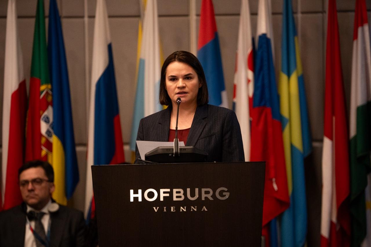 Сёння, 20 лютага, падчас візіту ў Вену, беларуская лідарка выступіла з прамовай на супольным пленарным пасяджэнні трох асноўных камітэтаў АБСЕ.