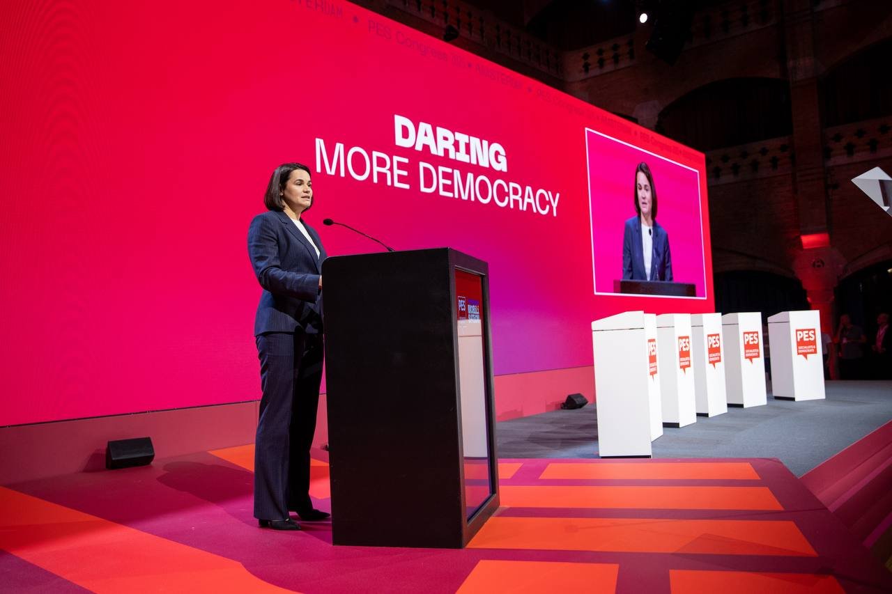 Святлана Ціханоўская падчас візіту ў Нідэрланды выступіла на кангрэсе Партыі еўрапейскіх сацыял-дэмакратаў (PES), дзе падзялілася беларускім досведам барацьбы за дэмакратыю.