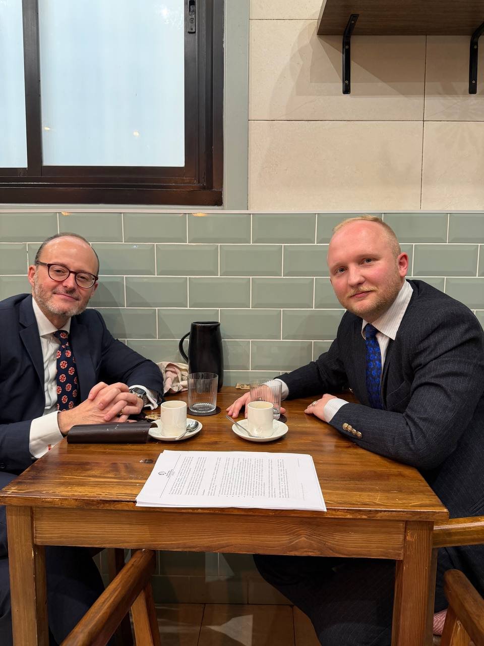 Падчас візіту ў Мадрыд дыпламатычны дарадца Святланы Ціханоўскай Дзяніс Кучынскі правёў сустрэчу з дзяржаўным сакратаром Міністэрства замежных справаў Іспаніі Дыега Марцінасам Беліа.