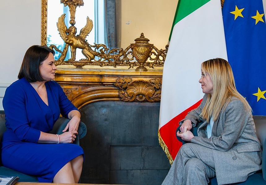 • Прэм’ер-міністарка Італіі Джорджа Мелоні прыняла Святлану Ціханоўскую ў Рыме