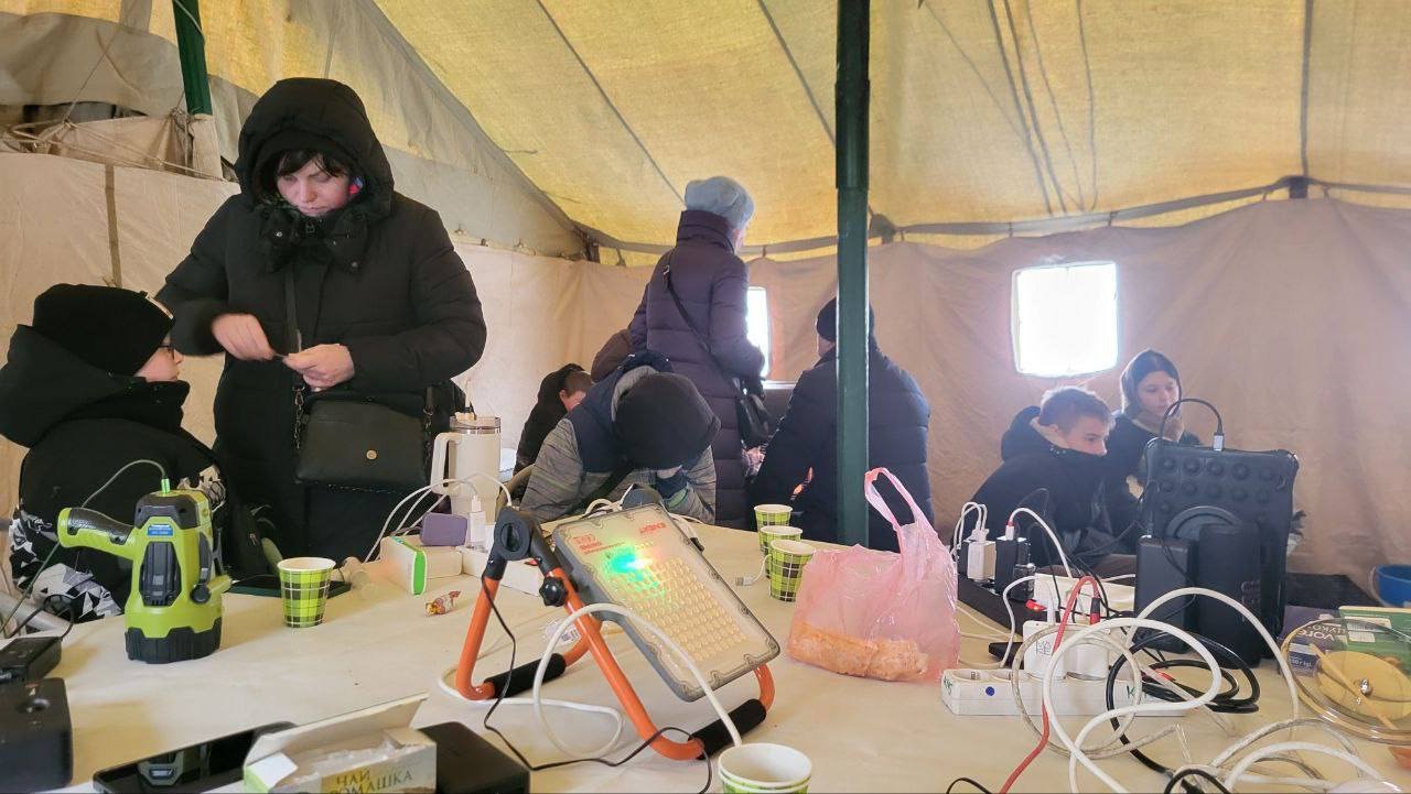 У Пункце Нязломнасці можна сагрэцца, падзарадзіць тэлефон, выпіць гарачай гарбаты і проста пабыць у бяспечнай, цёплай прасторы.