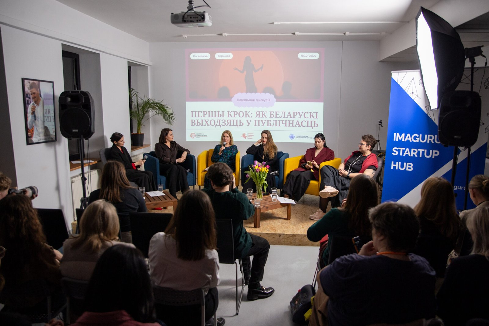 Фармат сустрэчы — жывая размова: мадэратарка Марына Ментусава задавала пытанні ўдзельніцам пра тое, як яны рабілі свой першы крок у публічнасць, што дапамагала на старце, якія страхі і выклікі даводзілася праходзіць і як не згубіць сябе ў гэтым працэсе. У дыскусіі таксама ўдзельнічалі Яна Шостак, Ліза Ветрава, Наста Базар і Ірына Сідорская.