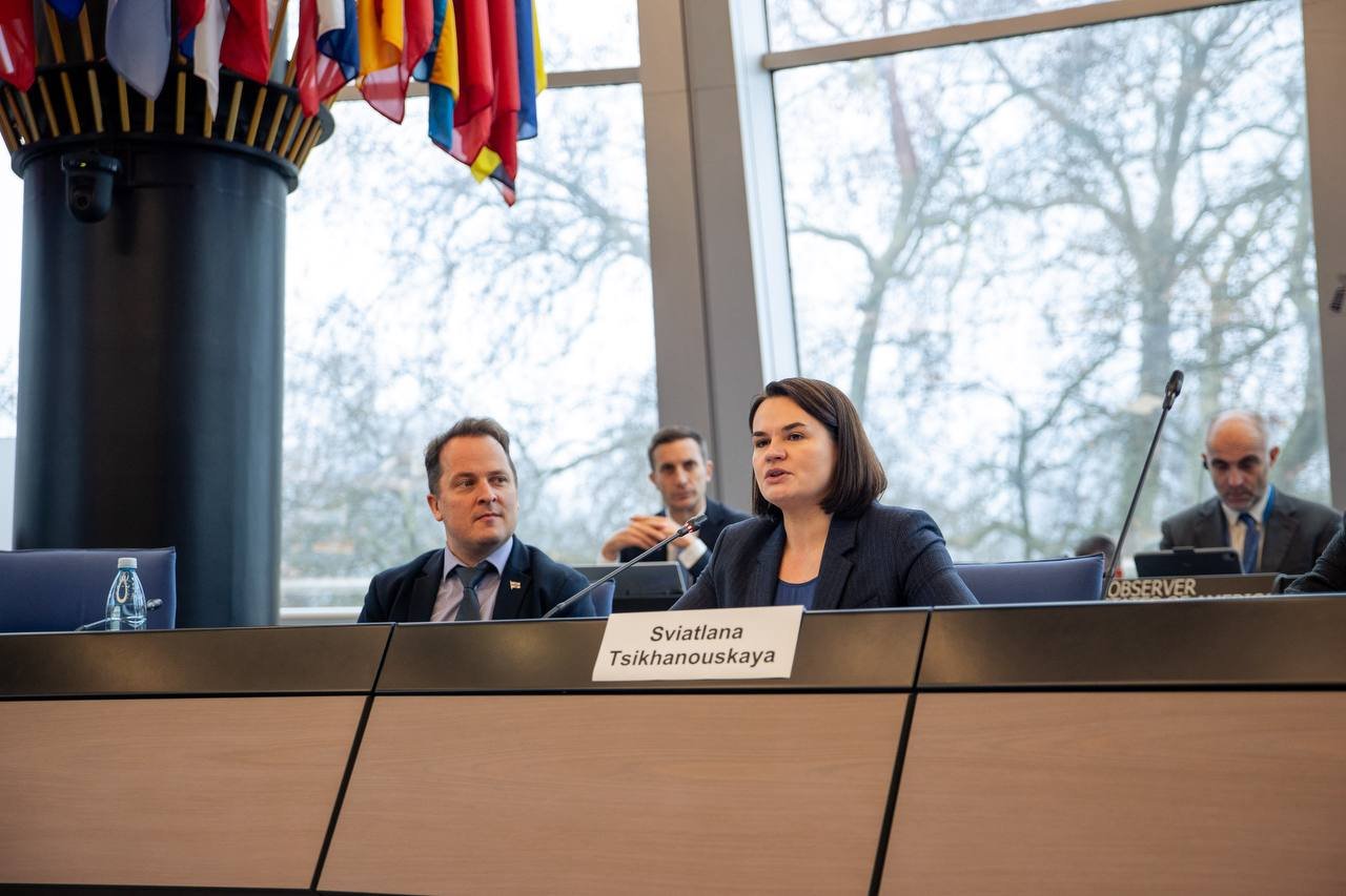 У сваім выступе беларуская лідарка падзякавала Радзе Еўропы за прынцыповую пазіцыю — спыненне супрацоўніцтва з рэжымам і падтрымку дэмакратычных сілаў Беларусі. Яна адзначыла, што стварэнне Кантактнай групы па супрацоўніцтве з беларускімі дэмакратычнымі сіламі і грамадзянскай супольнасцю стала прыкладам для іншых міжнародных арганізацыяў.