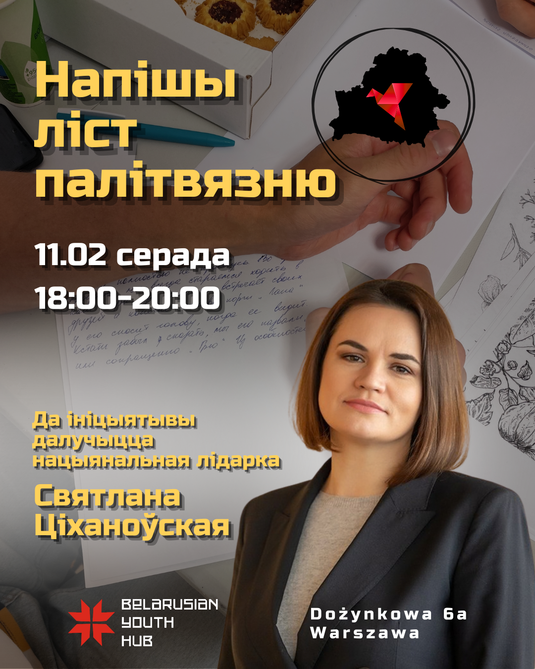 • Evening of writing letters to political prisoners with Sviatlana Tsikhanouskaya