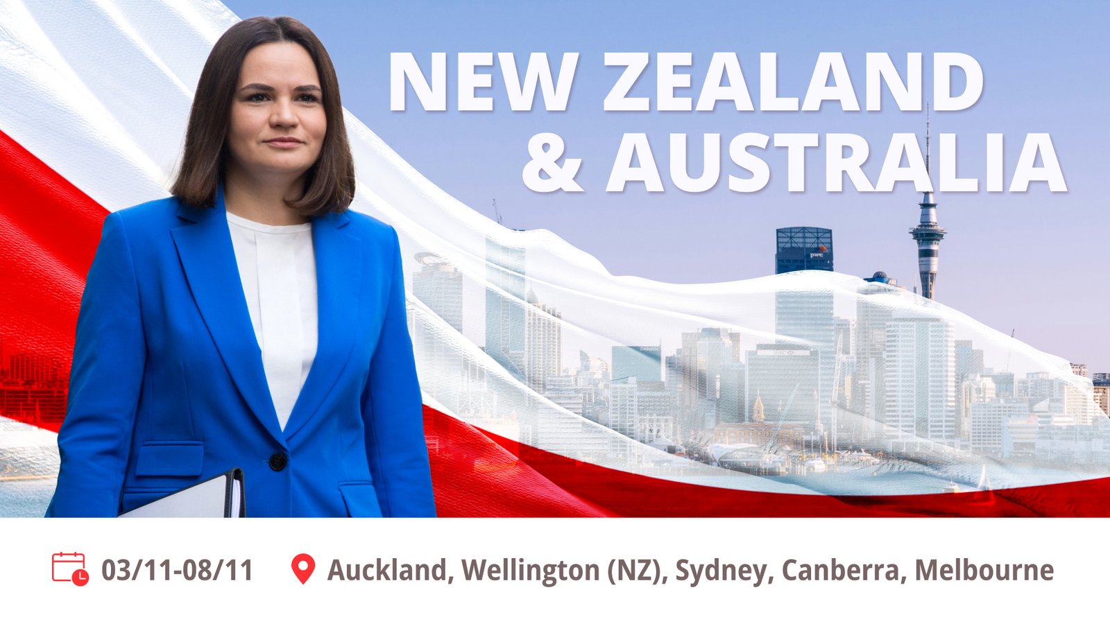 Sviatlana Tsikhanouskaya, President-elect of Belarus and Head of the United Transitional Cabinet, will visit New Zealand and Australia from 3 to 8 November 2025 at the invitation of the Ministries of Foreign Affairs of Australia and New Zealand.