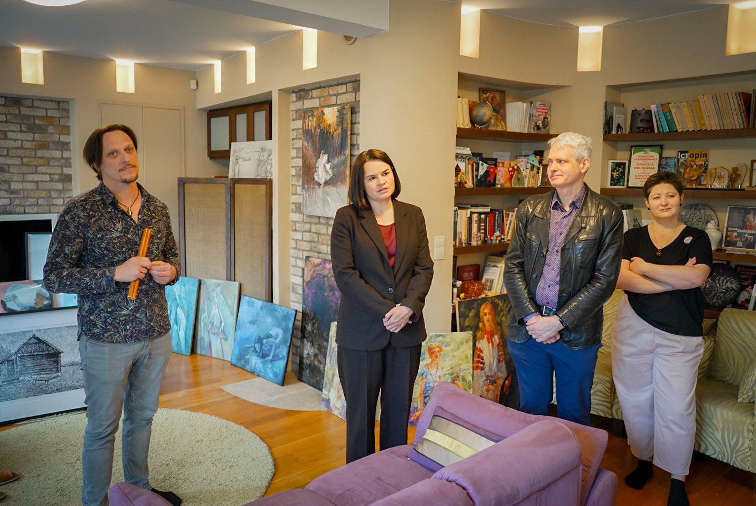 Светлана Тихановская посетила «Дом творцов» в Варшаве. Беларусская лидерка встретилась с руководителем и создателем пространства Сергеем Довгушевым, а также с краеведами и активистами Алесем и Анной Юркойтями, актёром и режиссёром Андреем Тризубом, скульптором Алексеем Урублевским и другими представителями сообщества.