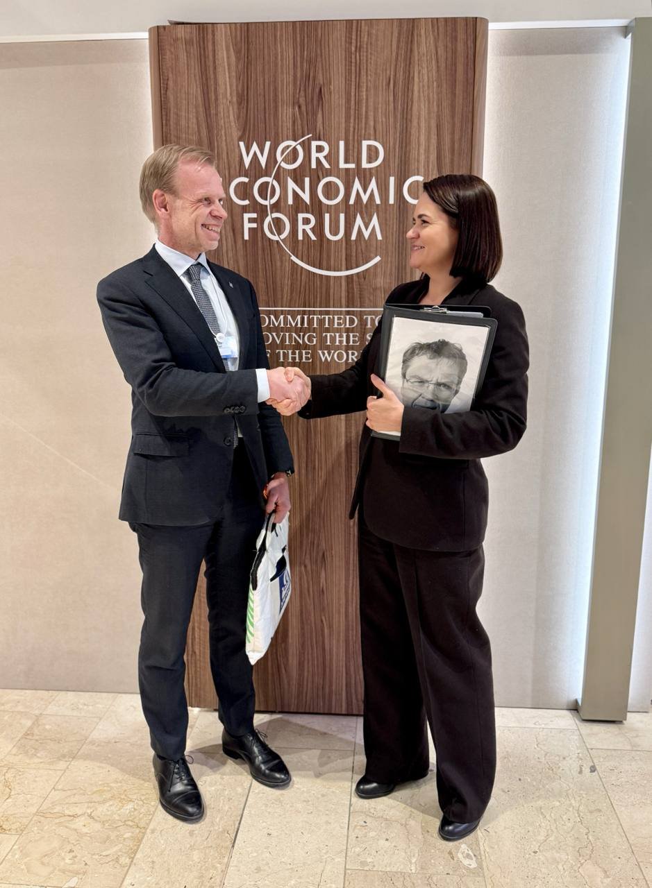 21 января во время участия во Всемирном экономическом форуме в Давосе Светлана Тихановская встретилась со Свейном Торе Хольсеттером — президентом и CEO Yara International. Во встрече также приняла участие Сиара Поравски, директор Yara по глобальным вопросам.