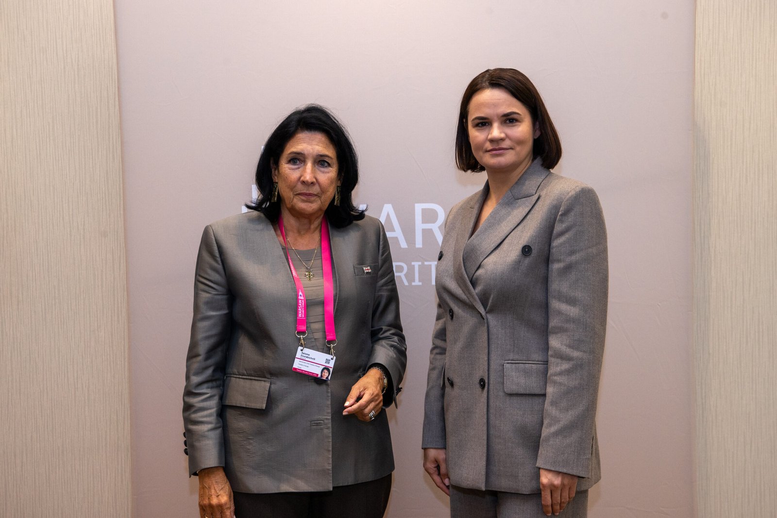 Во время визита в Польшу для участия в Варшавском форуме по безопасности Светлана Тихановская встретилась с президенткой Грузии Саломе Зурабишвили.