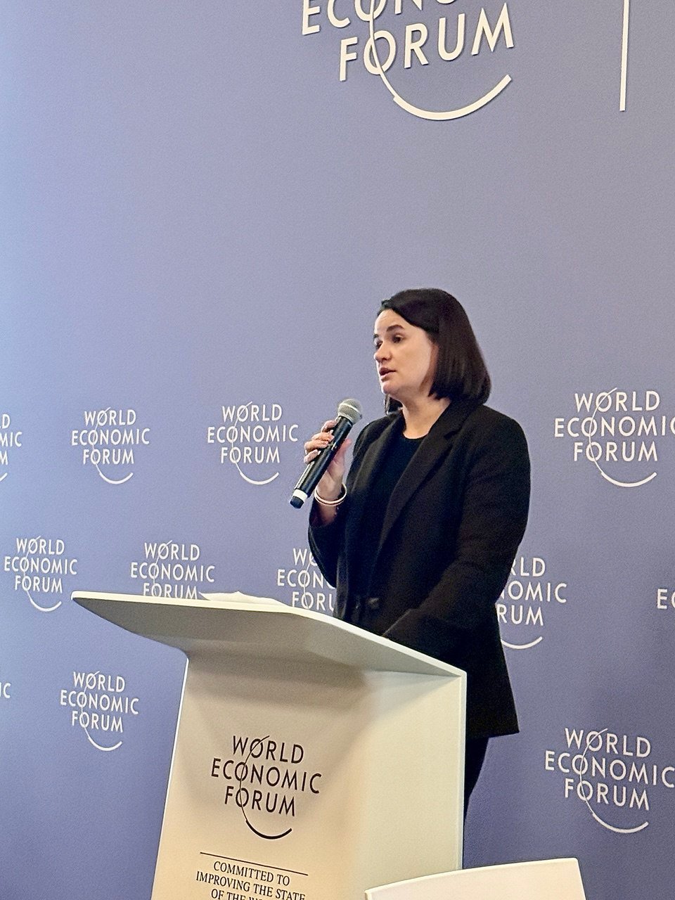 22 января 2026 года в рамках Всемирного экономического форума в Давосе Светлана Тихановская приняла участие в закрытой дискуссии Faith in Action: Leading the Spirit of Dialogue, которая прошла в формате ужина без участия прессы.