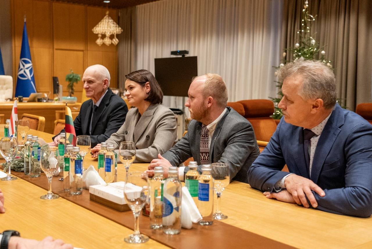 17 декабря в Сейме Литвы состоялась встреча Светланы Тихановской и Алеся Беляцкого со спикером Сейма Литвы Юозасом Олекасом. Также в ней приняли участие советник Тихановской по вопросам дипломатии Денис Кучинский и советник по парламентскому сотрудничеству Анатолий Лебедько.