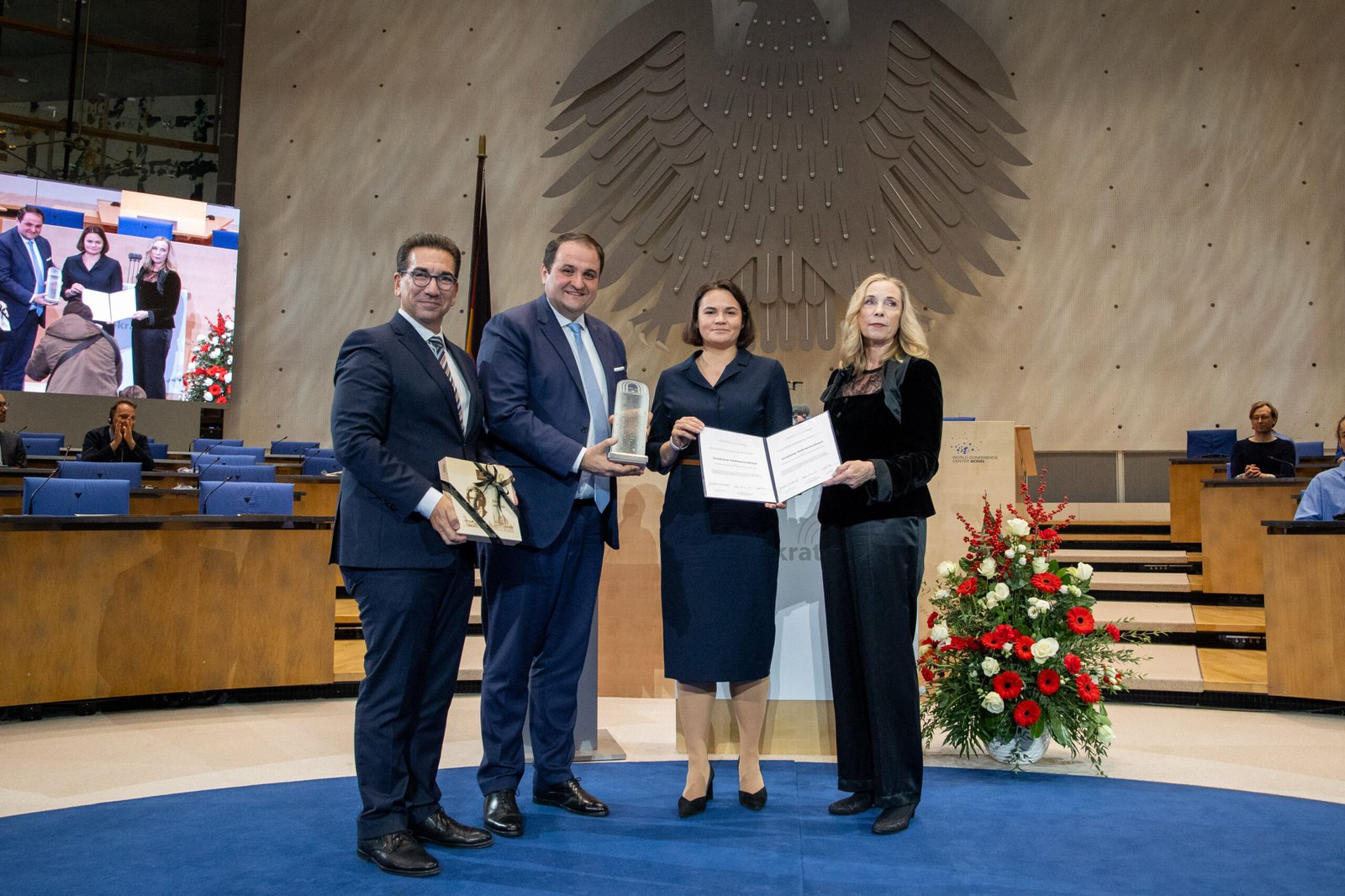 7 декабря Светлана Тихановская была награждена международной премией Bonn International Prize for Democracy and the Rule of Law за вклад в защиту демократии, принципа разделения властей и правового государства.